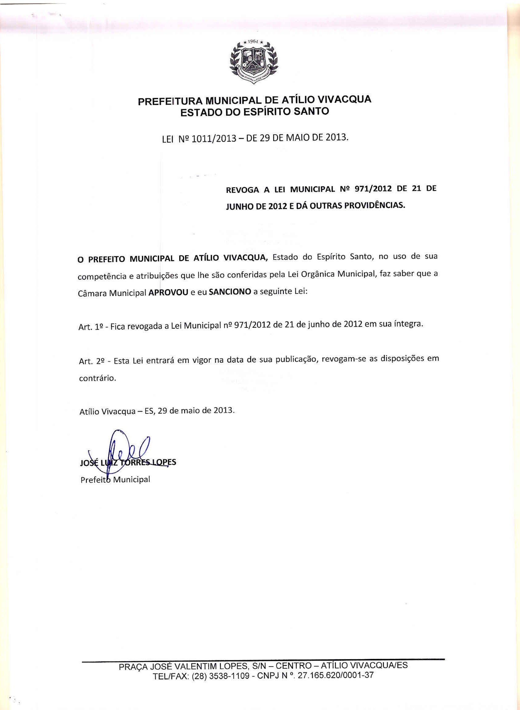 Lei Ordinária 1011/2013 |