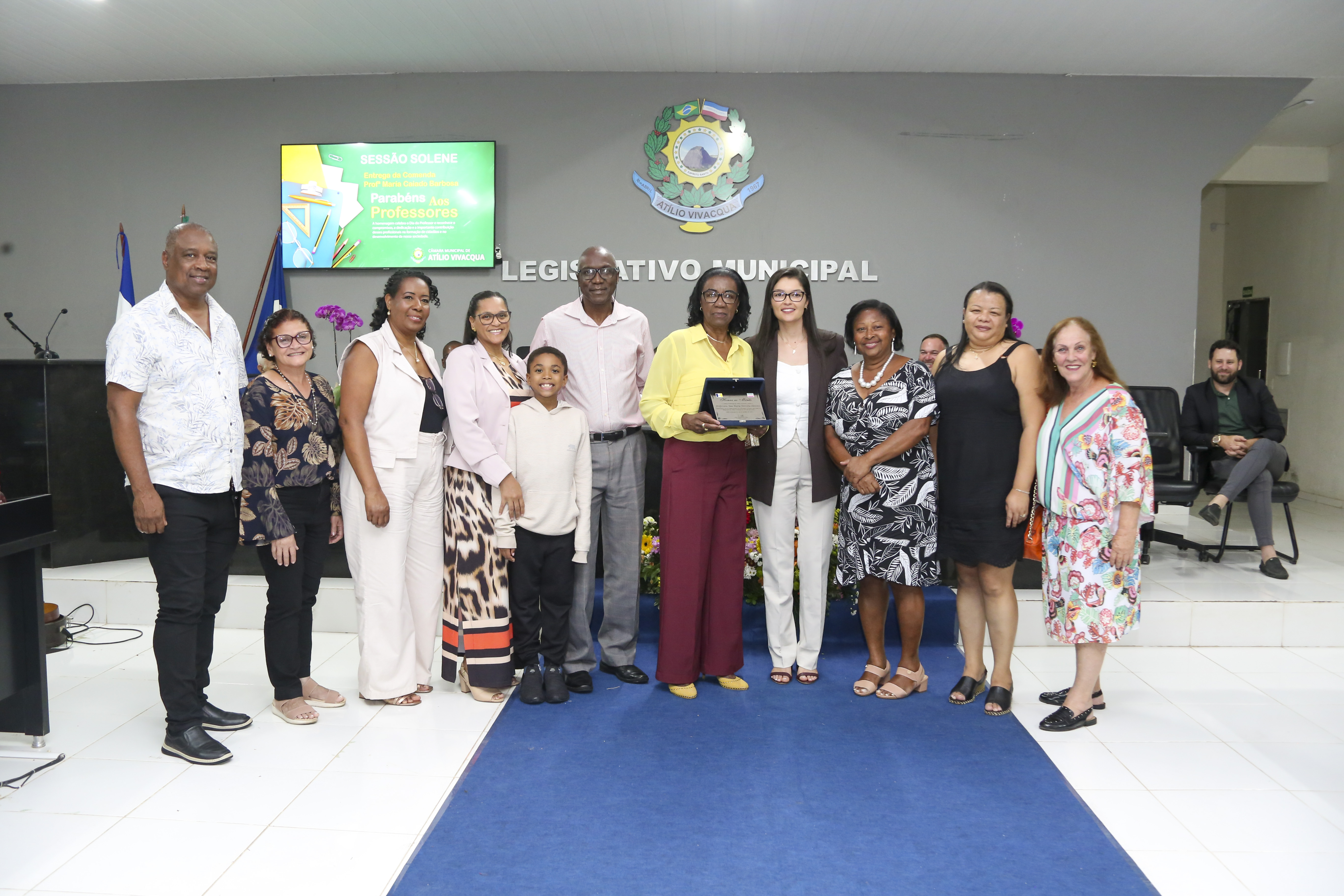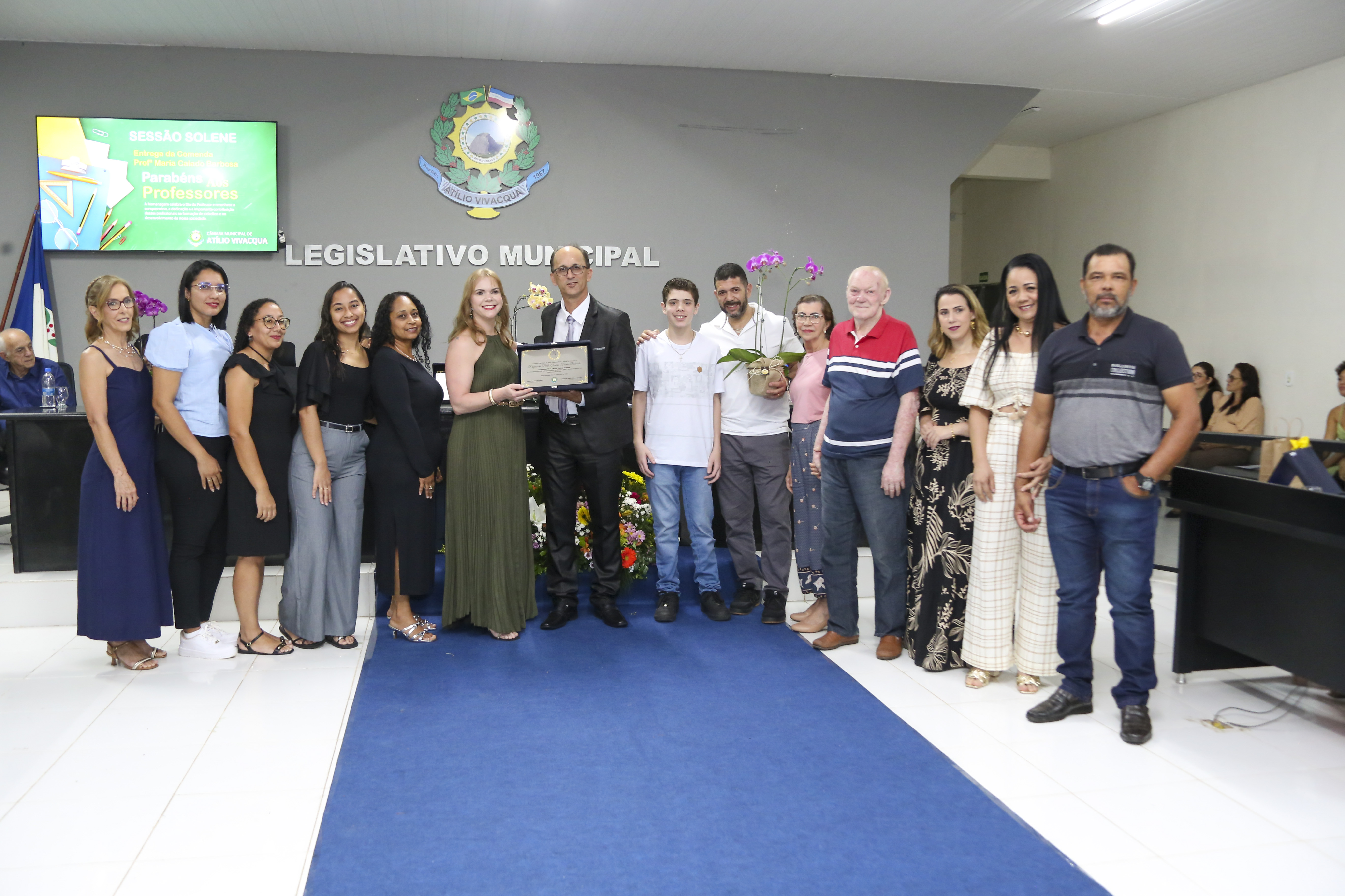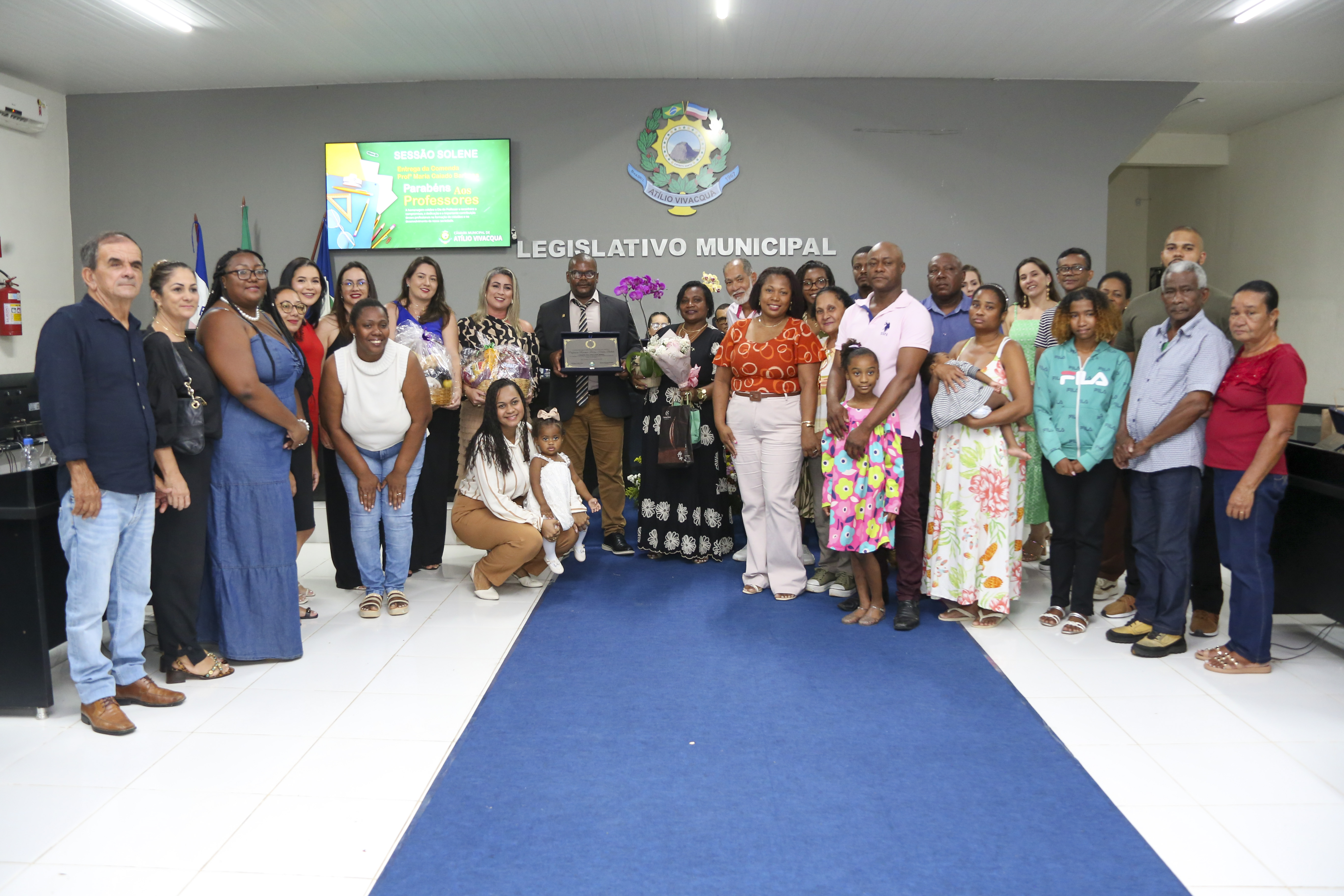 A Casa de Leis estendeu ainda o reconhecimento aos Servidores com histórico no magistério: os Vereadores Eduardo José Brito Sobreira, Tálita Santos Gomes e a Servidora Roseni Barros Herculano, além da Primeira-Dama e Professora Ludmila Mantuan dos Santos Lima.