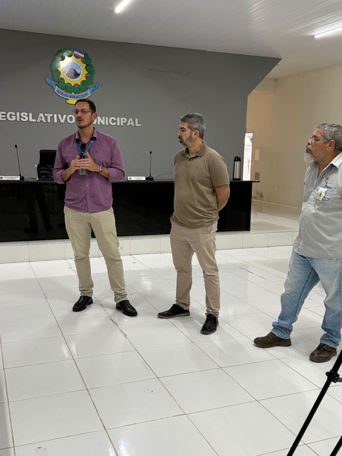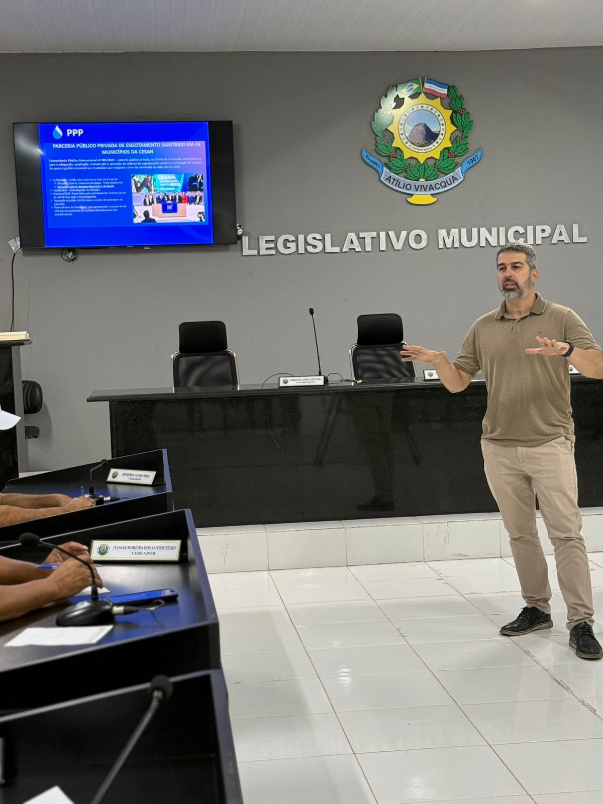 No dia 07 de abril de 2026, a Câmara Municipal de Atílio Vivácqua realizou uma reunião com representantes da CESAN (Companhia Espírito-santense de Saneamento) para apresentação e discussão dos resultados dos serviços de abastecimento de água e tratamento de esgoto no município.